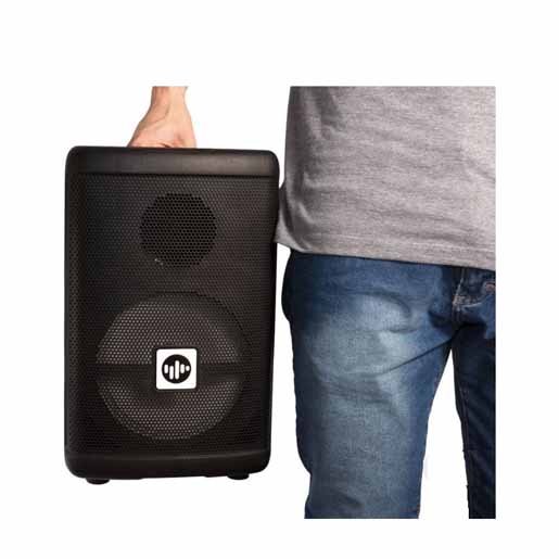 Está equipado con un parlante de 8 pulgadas de diámetro y un tweeter con 3 pulgadas de diámetro. Fueron fabricados con los mejores materiales disponibles y, por esa razón, ofrecen 30w RMS de potencia real para que puedas disfrutar tu música con todos tus amigos. El equipo tiene control de bajos, agudos y ecualizador, entrada auxiliar.