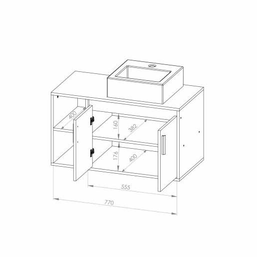 Vanitory Delos DZE03RNG 2 Puertas 80 x 45 Con Bacha Roble-Gris