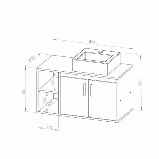 Bacha de Apoyo: Viene con una bacha de apoyo de 35 x 33 x 12 cm, que complementa el mueble y añade funcionalidad inmediata.
