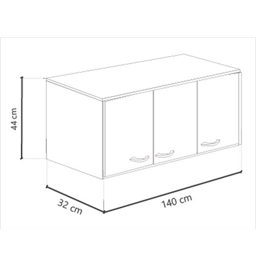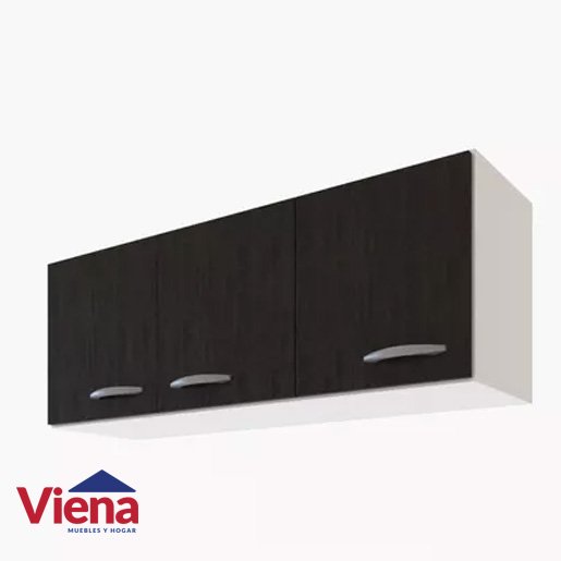 Alacena de 140 cm. Material: Melamina 15 mm. Diseño moderno con terminaciones lisas. 3 Puertas con bisagras metálicas. Estante interno de apoyo. Manijas de pvc cromadas. Dimensiones 32 × 140 × 44 cm. Color:Blanco / Roble Termo Negro