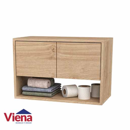 Alacena para baño con dos puertas y estante inferior a la vista. El mueble está fabricado en melamina MDP de 15mm.