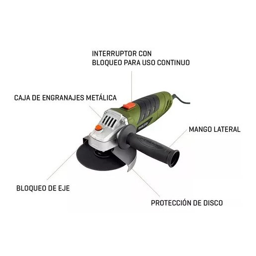 AMOLADORA ANGULAR PHILCO AA501P DISCO 115MM DE 500W 11000RPM AA501P La amoladora Philco es una herramienta versátil, que permite realizar diferentes trabajos con una terminación profesional. Por eso, es una excelente opción sumarla a tu taller o caja de herramientas. Equipá tu casa o taller y ¡hacelo vos mismo! Esta amoladora angular es perfecta para realizar distintos trabajos de amolado, cepillado y pulido. A su vez, se destaca por ser un elemento indispensable para cortar, desbastar y lijar diversos materiales derivados del metal. Segura y fácil de maniobrar. A la hora de trabajar con herramientas es importante que tu seguridad esté garantizada. Con el botón de bloqueo de disco que trae incorporado reducís al máximo el riesgo cuando trabajas con discos de corte. CARACTERÍSTICAS: Apta para un disco de 115 mm de diámetro. Trae interruptor tecla. Su potencia es de 500 W. Velocidad máxima de rotación de 11000 rpm. Tiene botón de bloqueo de disco. DIMENSIONES: