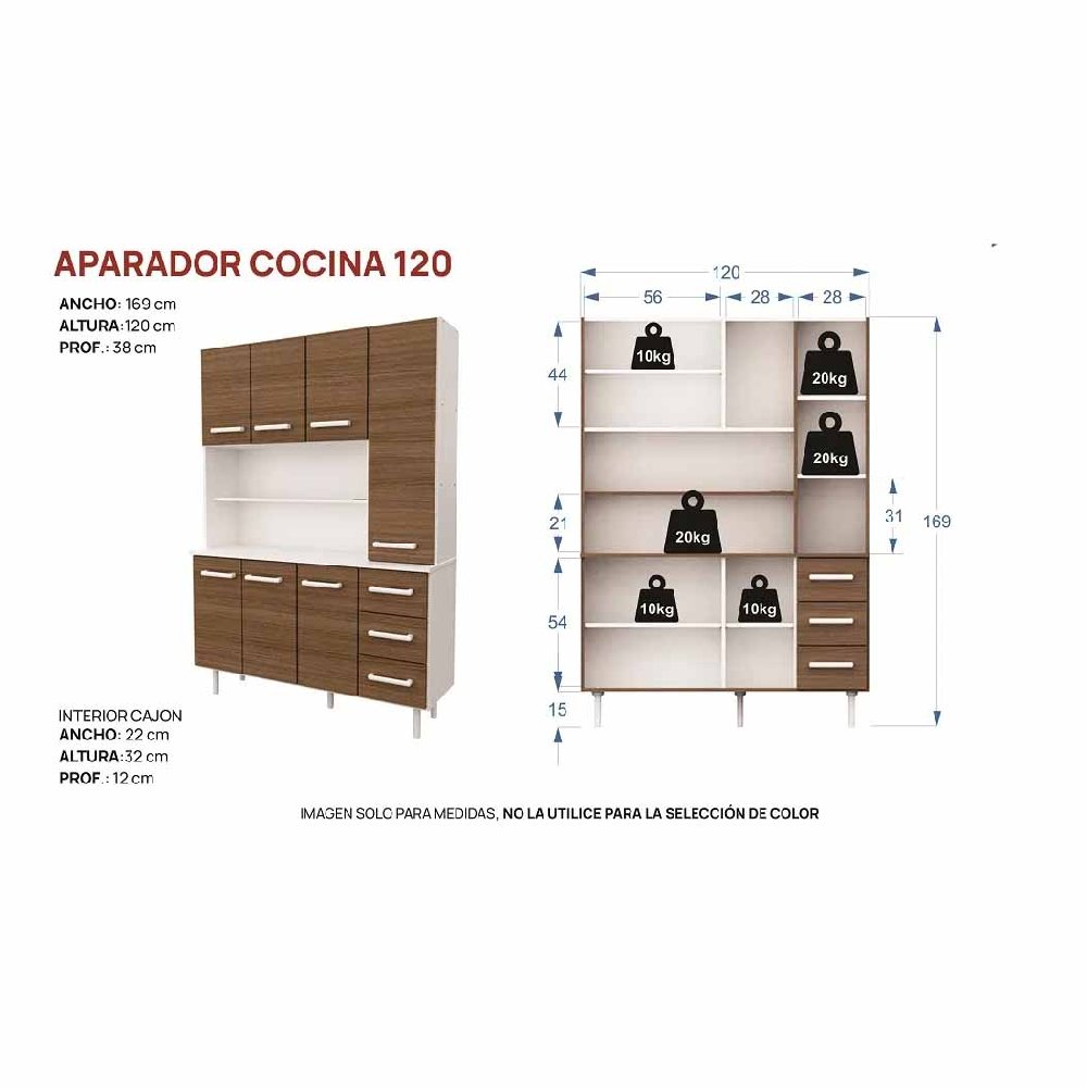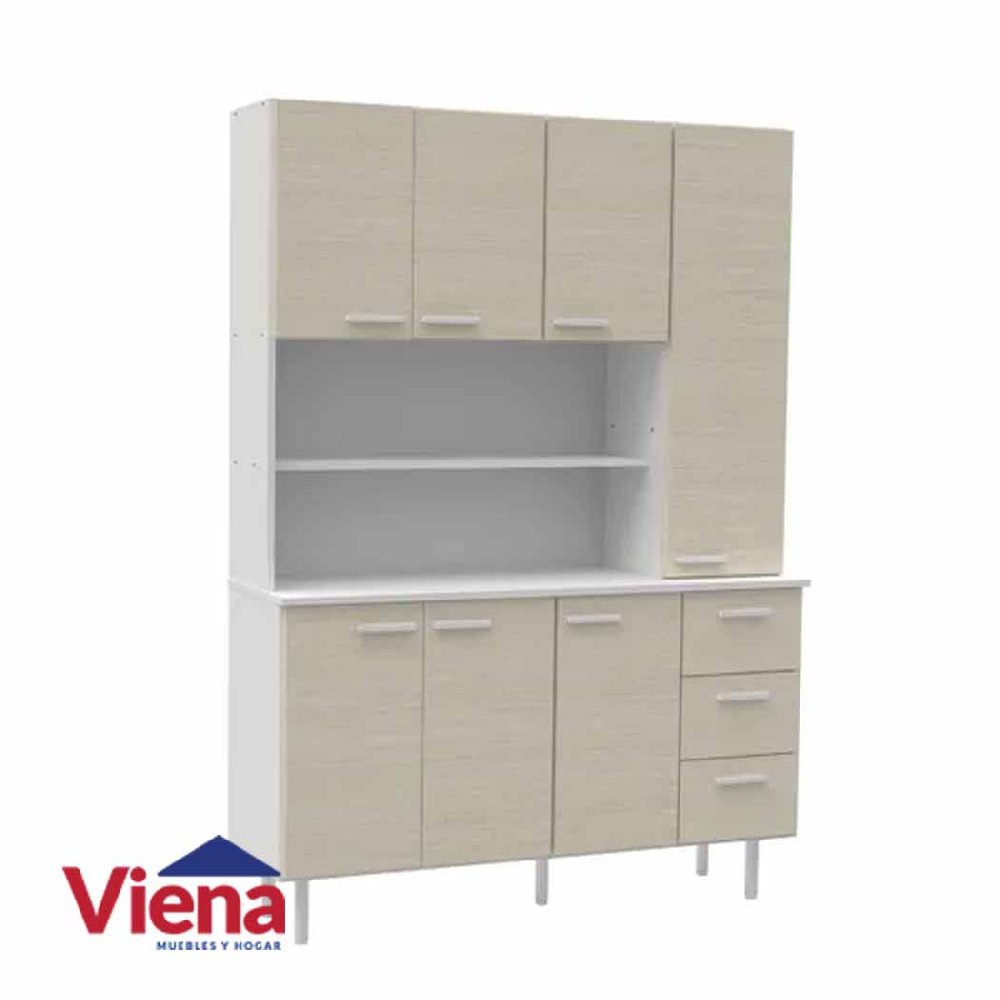 Aparador organizador de cocina de 1.20 metros de ancho, ideal para ampliar el espacio de guardado. Su profundidad de 38 cm permite buena capacidad sin ocupar demasiado espacio. El modelo Venezia ofrece un diseño funcional y moderno, pensado para organizar vajilla, alimentos, utensilios y pequeños electrodomésticos.