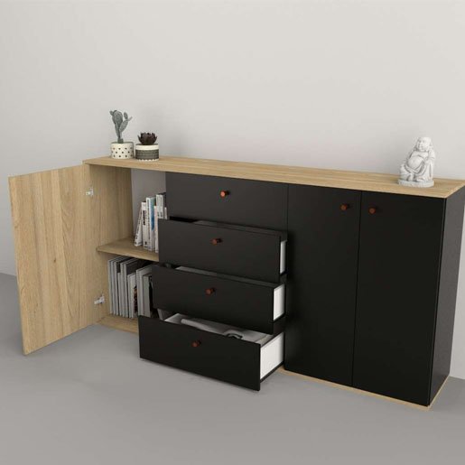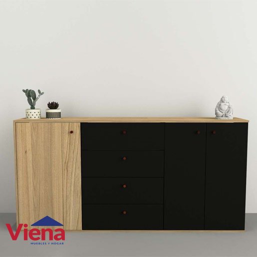 Bahiut Table’s 1.75 M 74010-COM Olmo Frente Negro 3 Puertas, 4 Cajones