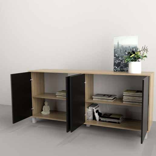 Este elegante bahut combina diseño moderno y funcionalidad, ideal para tu comedor o sala de estar. Con un acabado en tonos olmo, Negro, aporta calidez y estilo a cualquier ambiente.
