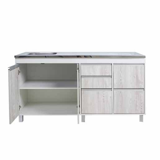 Este bajo mesada es una adición elegante y funcional para tu cocina, ofreciendo un amplio espacio de almacenamiento gracias a sus generosas dimensiones. El modelo Sorrento se destaca por su diseño moderno y su construcción duradera, con un acabado en Cascina Gris que complementa una variedad de estilos de cocina.