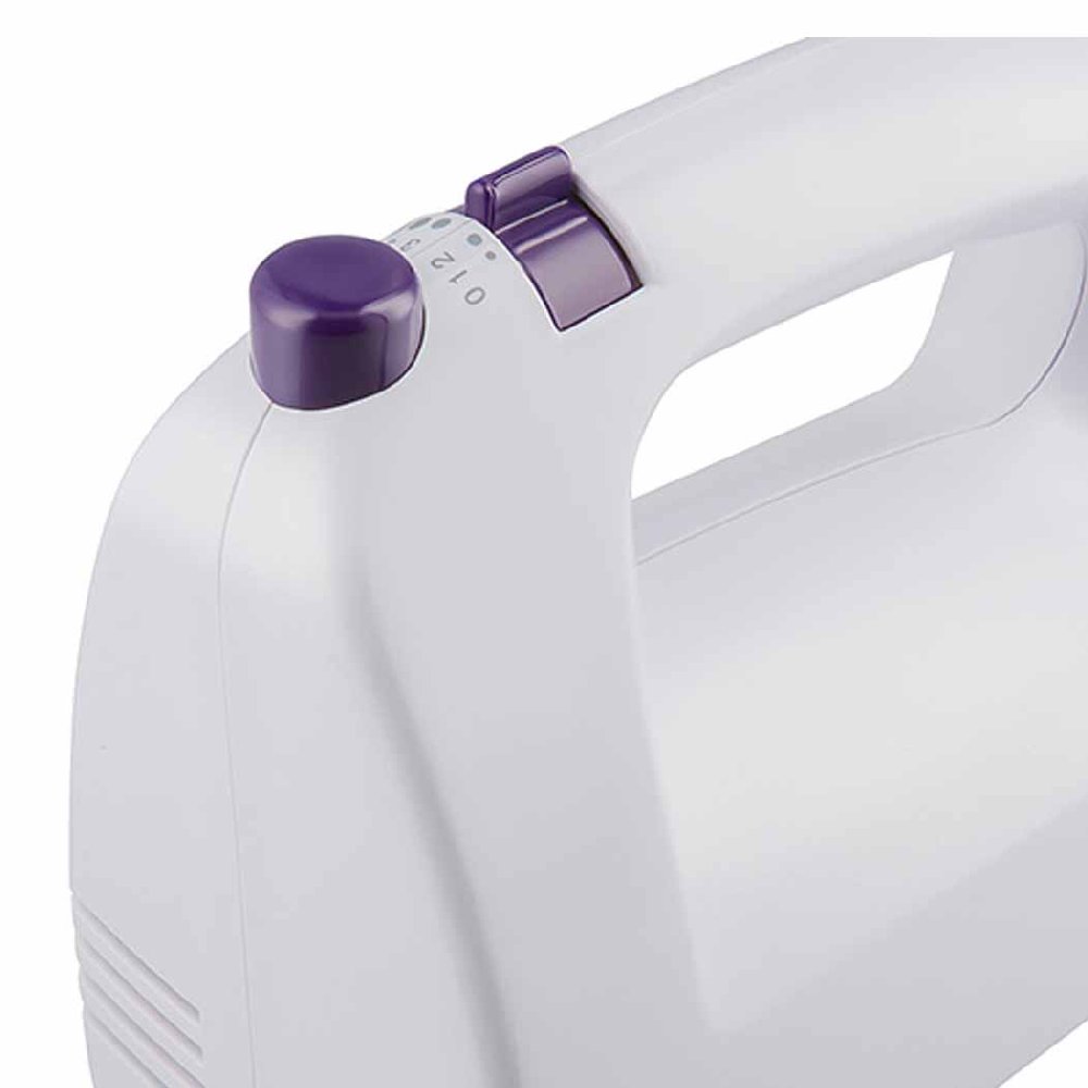 Esta batidora de mano es una aliada práctica y eficiente para tus preparaciones diarias. Su sistema 2 en 1 permite mezclar, batir y amasar con facilidad, adaptándose a múltiples recetas gracias a sus 5 velocidades que ofrecen mayor control en cada uso.