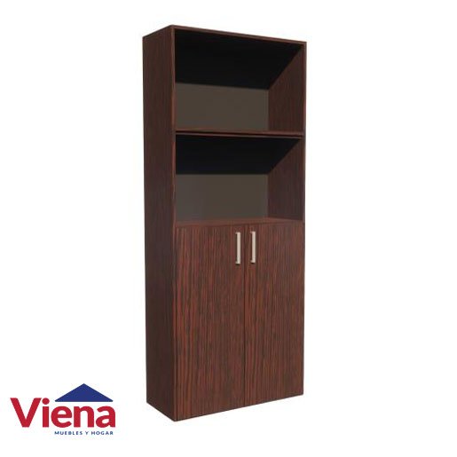 Material: Mdp 15 mm de espesor revestido en melamina de diferentes tonalidades, enchapado en canto melamínico. Cuenta con cinco estantes, uno de ellos fijo a la mitad de la altura, los otros cuatro son moviles. El fondo es del mismo color del mueble y las 2 puertas estan colocadas en la mitad inferior de la biblioteca. Posee regatones antihumedad.