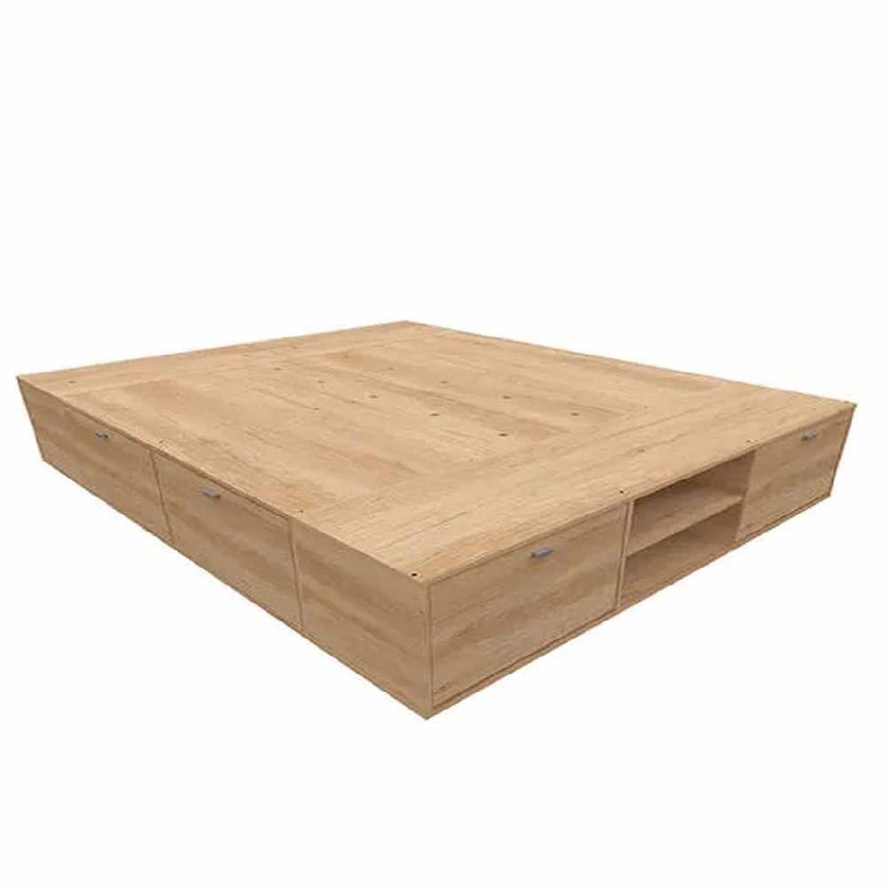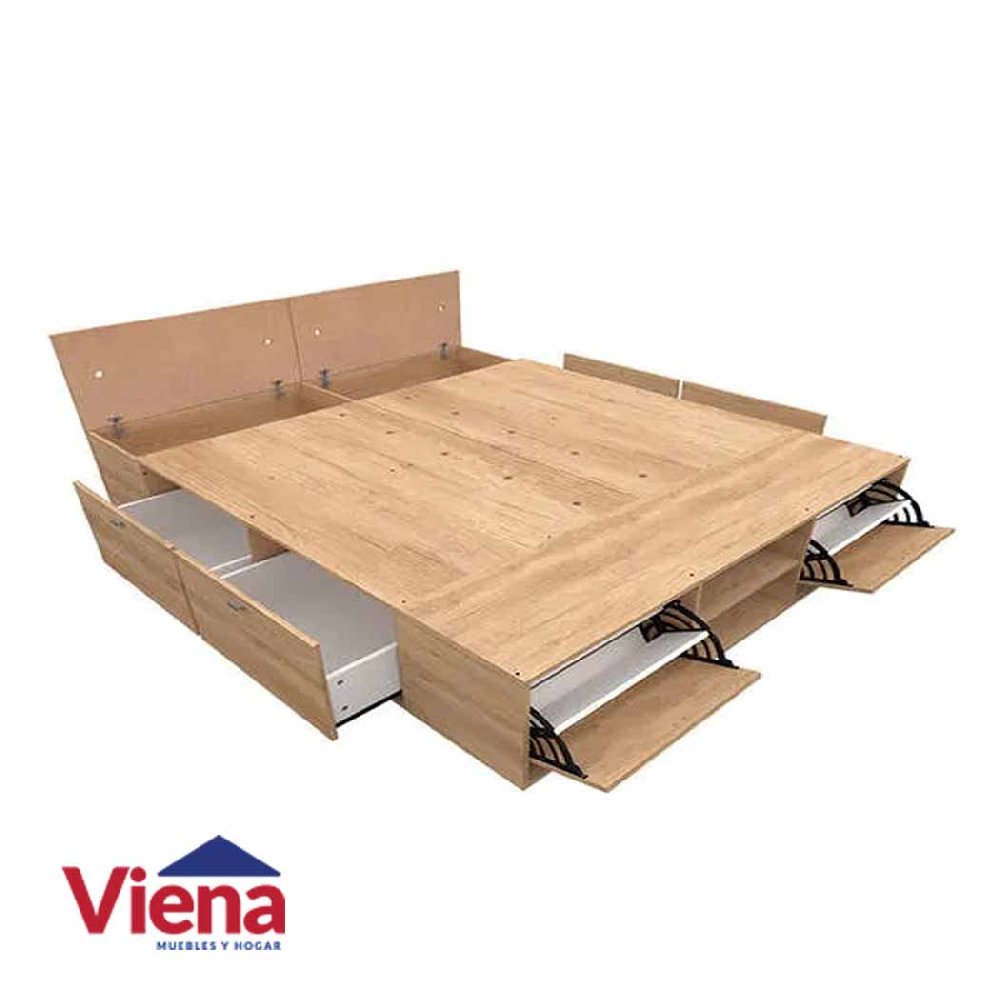 Esta cama box de 2 plazas Queen incluye amplios espacios de almacenamiento integrados: