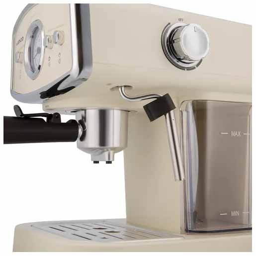 Con una presión de 19 bares y una potencia de 1,05 kW, esta cafetera extrae el máximo sabor y aroma del café. Su capacidad de agua de 1 litro la hace ideal para múltiples preparaciones sin necesidad de recarga constante. También cuenta con funciones útiles como calentador de tazas, emisión de vapor, dispositivo antigoteo e indicador de nivel de agua.