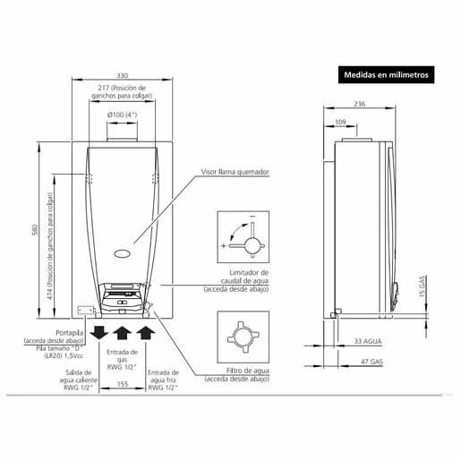El Orbis 315KJO utiliza un quemador que genera una llama para calentar el agua mientras circula por un radiador interno. El agua caliente fluye de forma continua hasta el grifo activado, asegurando un suministro constante y eficiente de agua caliente en todo momento.