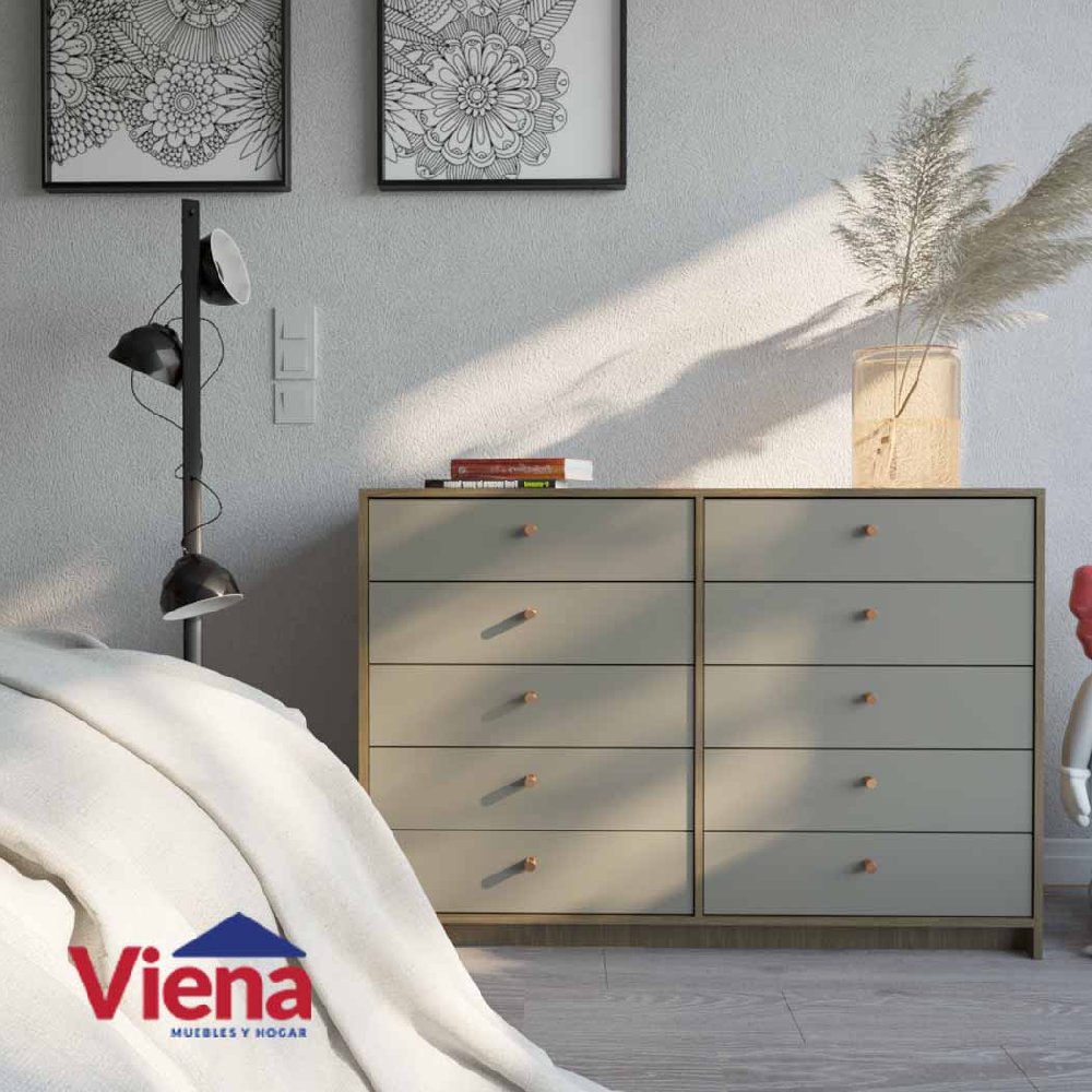 Dispone de diez cajones amplios y de deslizamiento suave, lo que permite mantener la ropa y objetos personales perfectamente ordenados. Su estructura sólida asegura estabilidad y durabilidad incluso con uso intensivo.