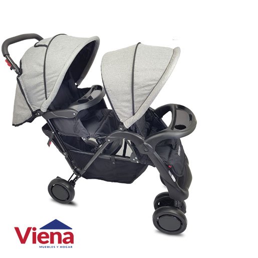 TWIN es un comodísimo coche para llevar a tus bebés, te permite pasar con comodidad por todo tipo de puertas y contarás con un bolsón lo suficientemente amplio como para llevar lo que ambos necesitan para su paseo. Las ruedas delanteras giratorias le dan mucha facilidad de giro. Con bandeja frontal para ambos asientos, incluye cubrepié. Soporta hasta 30 kg de peso.