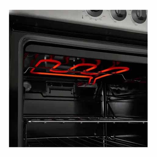Acero inoxidable con rejas de hierro fundido, display con comandos touch, reloj digital programable, quemador doble corona, grill eléctrico, timer, termostato, encendido electrónico a una mano y vidrio reflex.