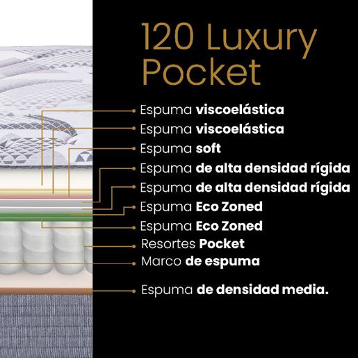 Cuenta con resortes pocket y espuma viscoelástica, disminuyendo la transferencia de movimiento al dormir de a dos y otorgando gran adaptabilidad.
