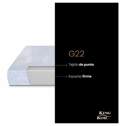 El colchón King Koil G22 de 1 plaza combina firmeza, confort y diseño elegante en un formato práctico y funcional. Su núcleo de espuma de alta densidad ofrece un soporte firme, ideal para quienes buscan mantener una postura saludable durante el descanso.