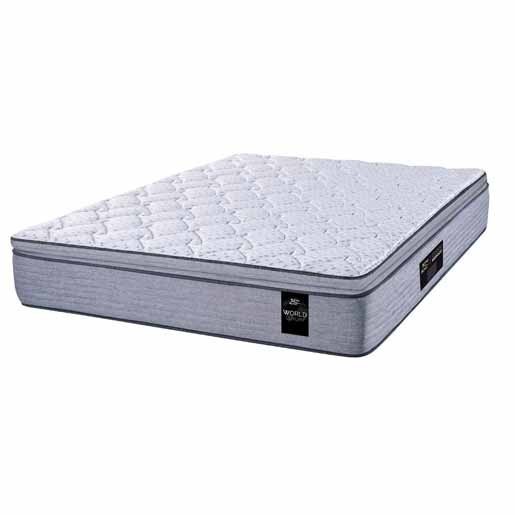 Una pieza firme que conserva a través de su pillow top una destacada suavidad al tacto, se combina con un diseño sofisticado, laterales revestidos en tela jackard piqué, y las notables cualidades de la línea World Luxury, brindando un óptimo descanso.