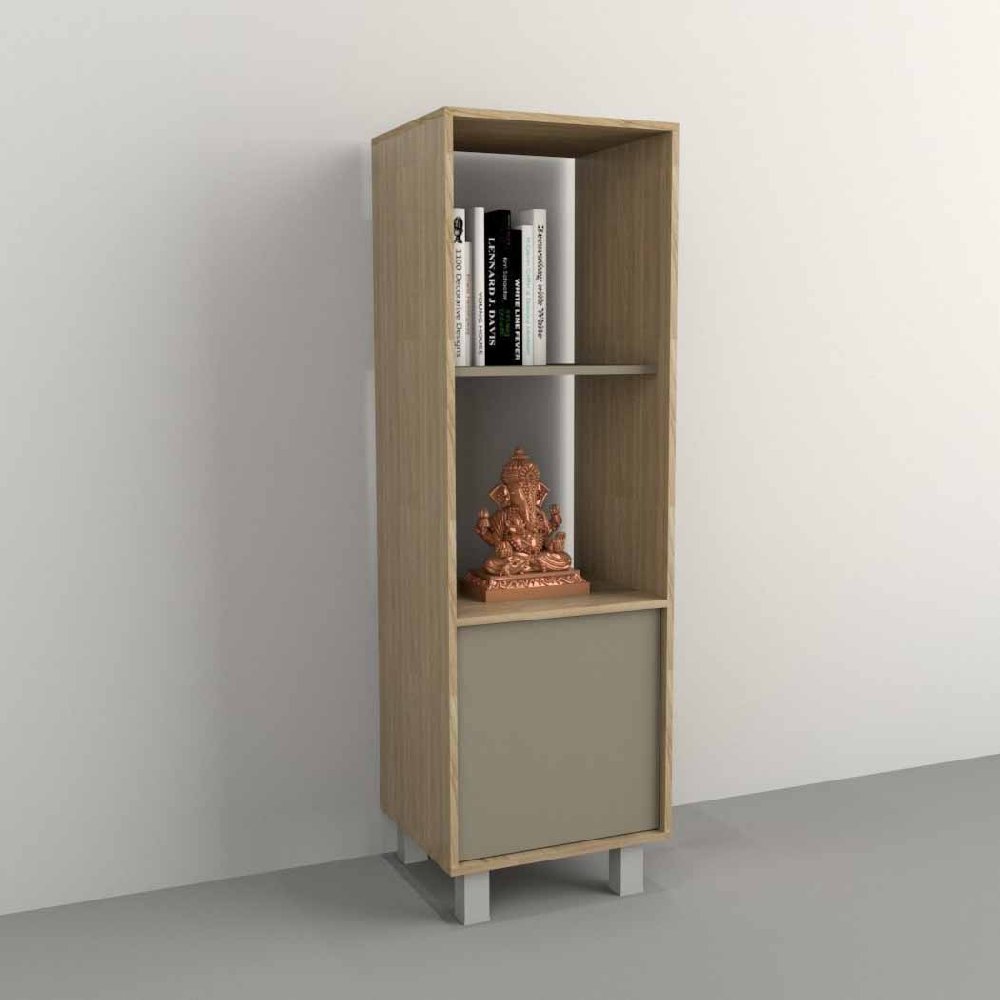 Columna funcional y compacta, ideal para sumar espacio de guardado y estilo en livings, comedores u oficinas. Su combinación Olmo Fumé con Gris Claro aporta un diseño moderno y versátil.
