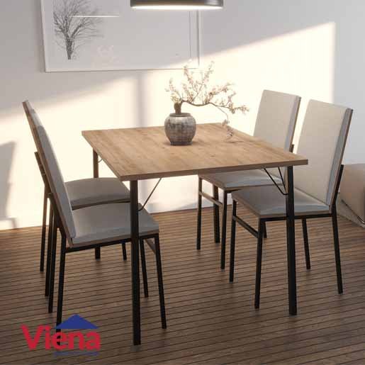 Combo Delos 4 Sillas DNE02GR+MESA DNE128RDMT 128X80 Color Roble Davos Marrón Trufa