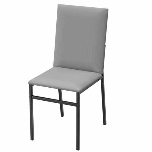 Silla con asiento y respaldo tapizados en tela lavable de pana gris. Estructura de caño desarmable con pintura epoxi negra. Madera touch de alta terminación en 15mm de espesor.
