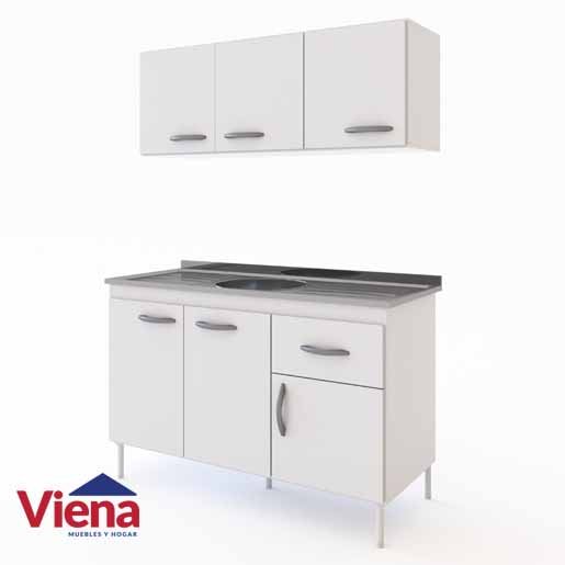 Combo Delos Bajo Mesada + Alacena + Mesada Acero 120 Blanco