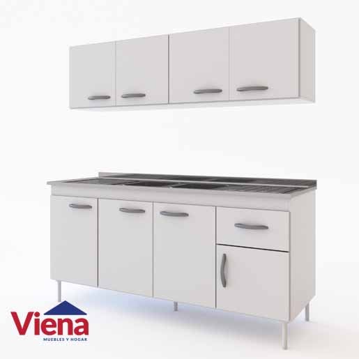 La mesada de acero inoxidable con bacha doble central completa este conjunto funcional, resistente y fácil de mantener. Su diseño está disponible en dos opciones de color: Blanco y Blanco / Roble Termo Negro, adaptándose con facilidad a diferentes estilos de decoración.