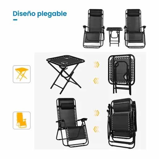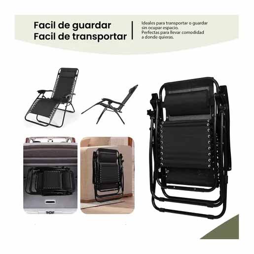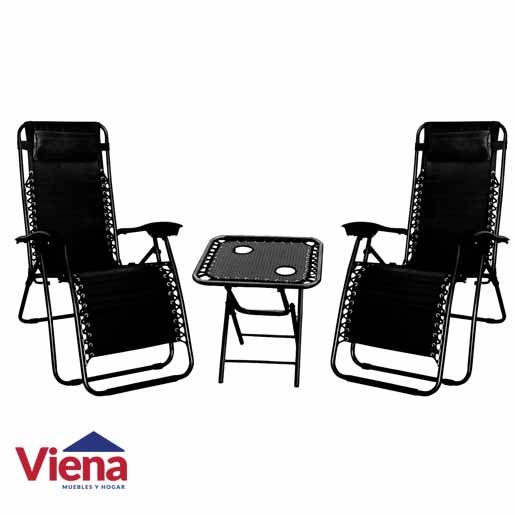 Combo Reposera Ri Gravedad Cero Negra + Mesa 112