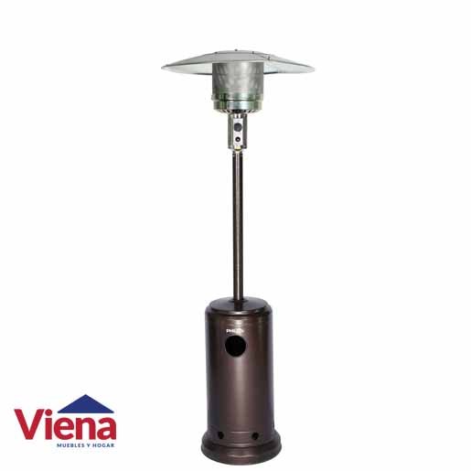 Fabricado con materiales resistentes y acabado en color bronce, incluye un reflector de 81 cm de diámetro que mejora la difusión del calor. Además, posee ruedas integradas que facilitan su traslado, ofreciendo practicidad y versatilidad en su uso diario.