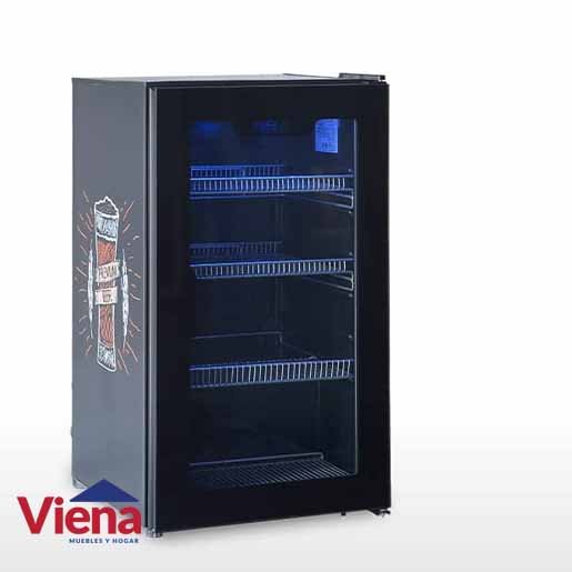 La exhibidora vertical para cervezas cuenta con 106 litros de capacidad; además, posee condensación estática, tres estantes móviles y reja de piso.