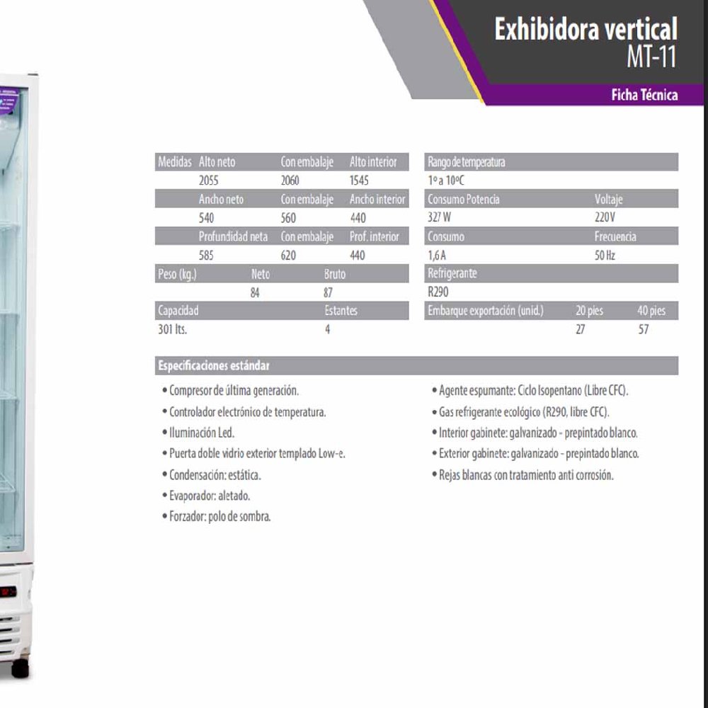 Exhibidora Inelro Vertical MT-11 R209 301lts sin cenefa