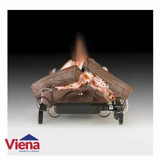 Fabricado con cuerpo metálico de alta resistencia y leños refractarios diseñados artesanalmente para imitar la leña natural. Su quemador enlozado de alto rendimiento incluye una placa cerámica difusora de llama, lo que asegura una distribución pareja del calor.