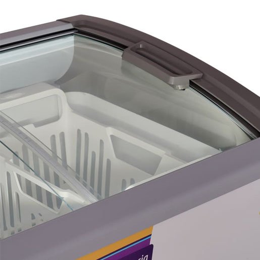Freezer Exhibidor Horizontal con Tapa de Vidrio curvo.