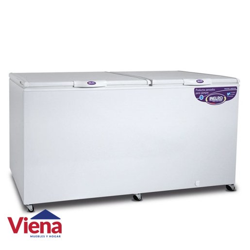 El freezer Inerlo FIH-700 tiene un diseño tradicional horizontal en color blanco con dos puertas robustas de manijas ergonómicas. Para organizar mejor los productos almacenados, cuenta con canastos contenedores para accesibilidad inmediata. El desagüe se encuentra en la parte frontal.