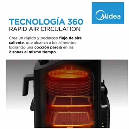 Cocción uniforme: Tecnología 360° Rapid Air Circulation, para resultados poderosos y una cocción pareja en las 2 zonas al mismo tiempo.