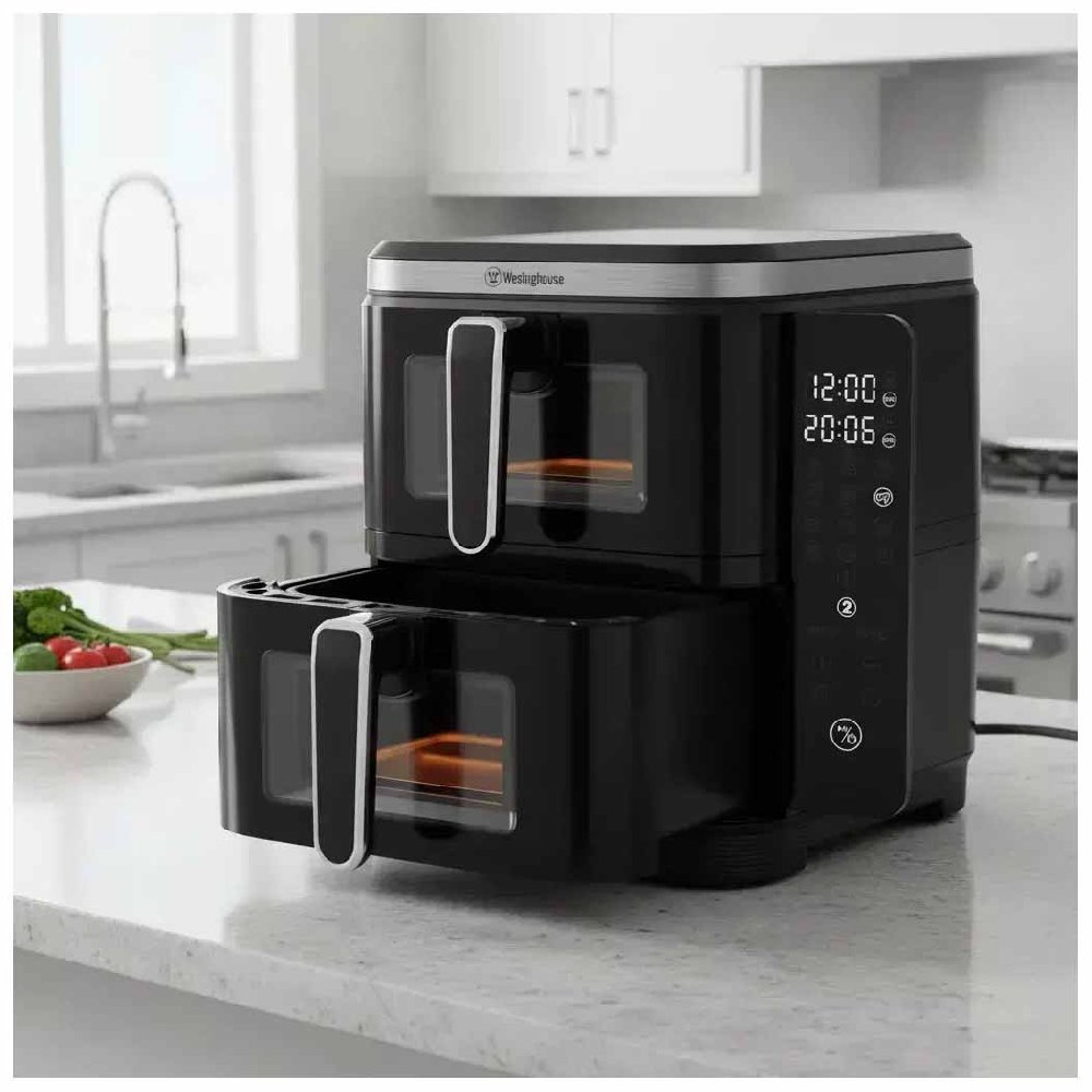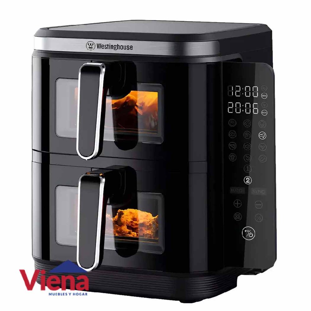 La freidora de aire Westinghouse WKAF2201 está diseñada para quienes buscan una forma más saludable y práctica de cocinar. Gracias a su gran capacidad y doble canasto, permite preparar dos comidas al mismo tiempo, optimizando tiempo y resultados sin necesidad de utilizar grandes cantidades de aceite.