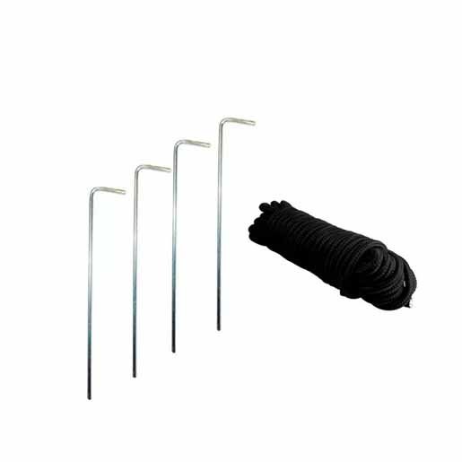 - Incluye: Bolso para guardar y transportar, 8 estacas metálicas y cuerdas