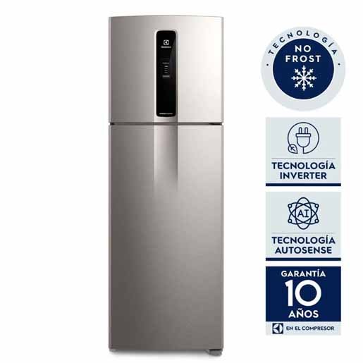 La Heladera Electrolux Top Freezer No Frost Inverter con AutoSense Plata 408L IF43S, posee mayor capacidad para preservar mejor tus alimentos y garantiza un menor consumo de energía. Su diseño moderno y elegante ofrece sofisticación a tu cocina.