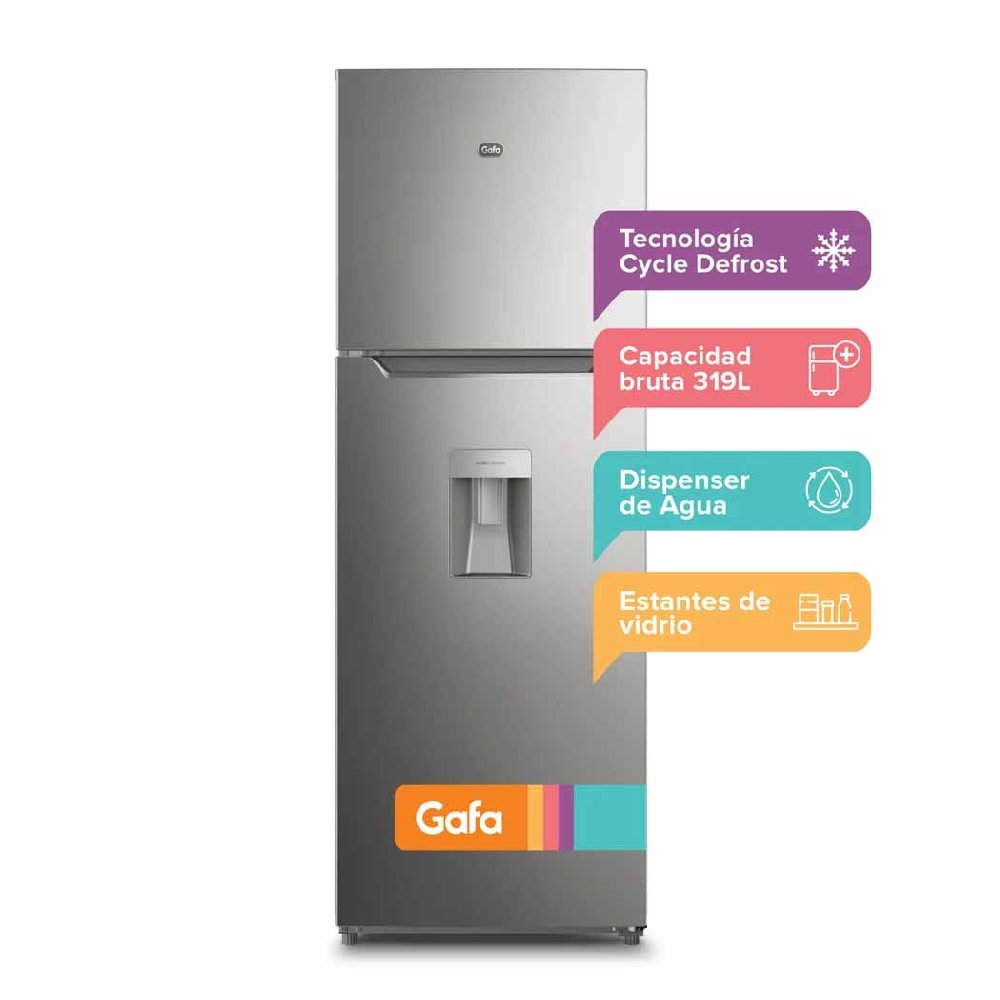 Heladera Gafa Top Freezer 319 L con Dispenser de Agua Plata (HGW311P)