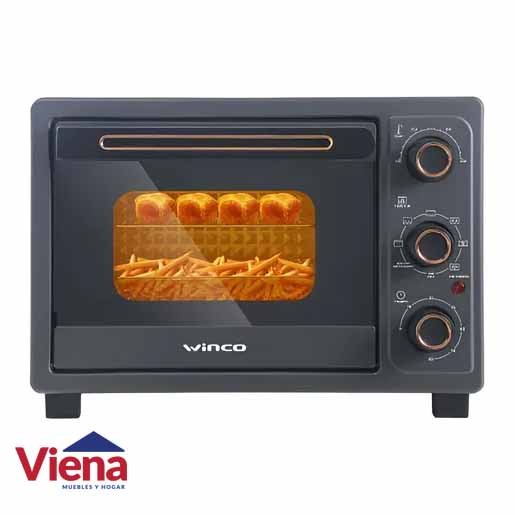 Su puerta de doble vidrio templado permite visualizar el proceso de cocción sin perder el calor. Incluye accesorios prácticos: bandeja para hornear, rejilla para freír y canasto jaula.