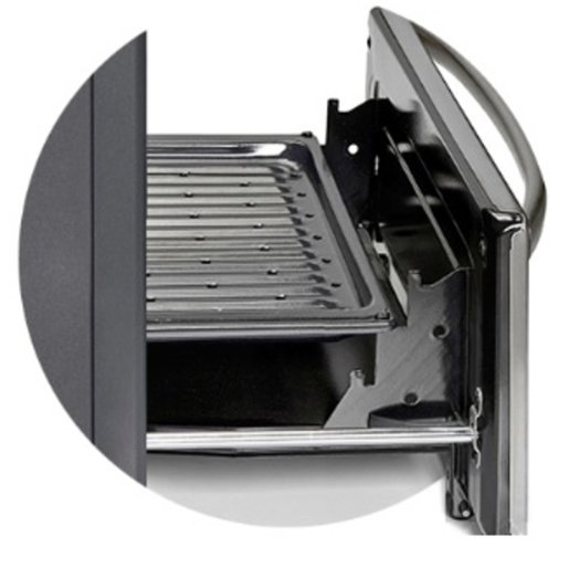 Acero inoxidable de 60x90 cm con parrilla-grill a gas, timer, termostato y encendido electrónico a una mano.