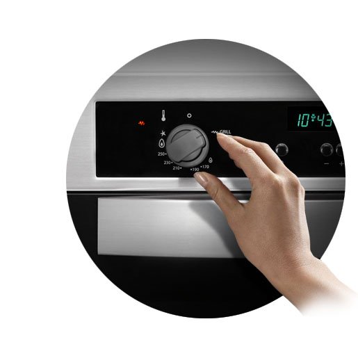 El termostato mantiene constante la temperatura del horno para lograr una cocción pareja y el timer anuncia la finalización del tiempo seleccionado.