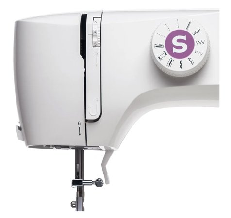 Costura recta y zigzag. 6 puntadas diseños de puntadas. Devanador automático. Selector de largo de puntadas.