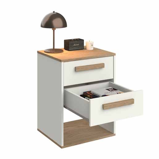 Mesa De Luz Delos 2 Cajones DNA05RKBL Roble K Blanco