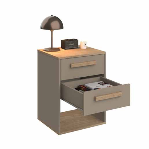 Mesa De Luz Delos 2 Cajones DNA05RKGA Roble K Gris