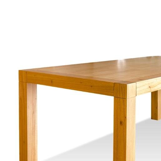 La MESA FIJA es un producto de diseño racional con detalles que le otorgan un carácter distintivo y sobrio, como el encuentro en forma de cubo entre la tapa y las patas, y una terminación artesanal que se expresa en el ligero redondeado de sus aristas.