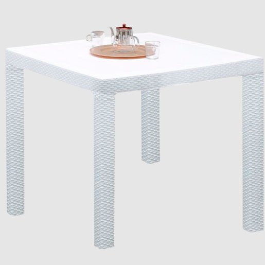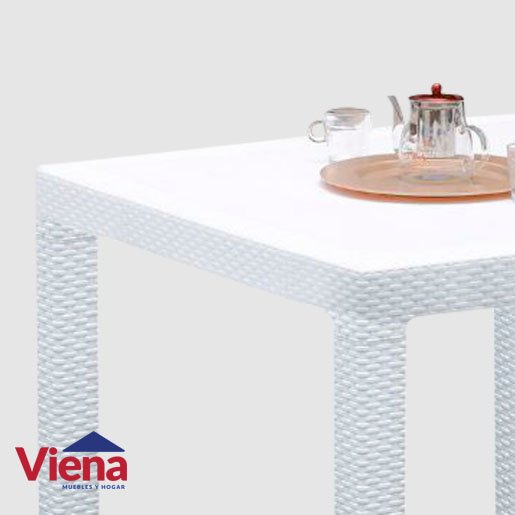 Mesa Plastica Fidji VOSS Estilo Rattan Blanco Cuadrada 90 Cm