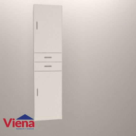 Medidas: Largo 0,45 m - Alto 1,79 m - Profundidad: 0,46 m Cantidad de puertas: 2 Cantidad de cajones: 2 (interior totalmente revestido con la misma melamina) Cantidad de estantes: 2 Manijas de aluminio anodizado Peso: 49 Kg. Sistema Minifix-Correderas metálicas-Bisagras metálicas