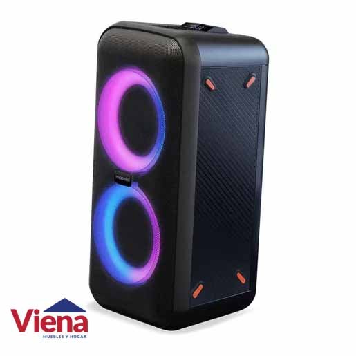 Presenta además otros modos de conectividad múltiple con entradas para micrófono, guitarra y USB. Entre sus cualidades se encuentran la radio FM, batería recargable, pantalla LED y un diseño con efectos dinámicos de anillos de luz LED en su doble woofer.