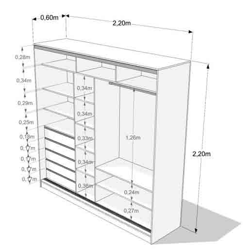 Profundidad: 60 CM Ancho: 120 / 140 / 180 / 220 CM respectivamente Alto: 220 CM.