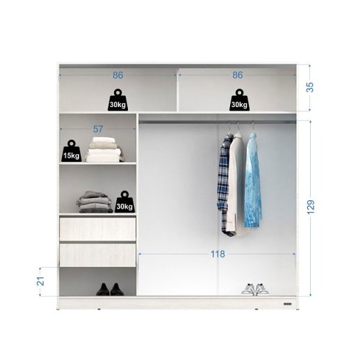 2 puertas corredizas sobre guías inferior y superior de aluminio anodizado.